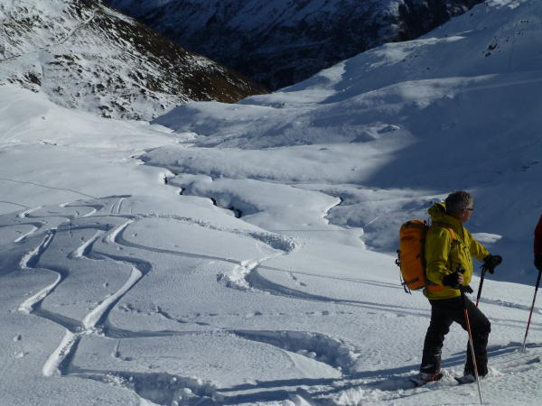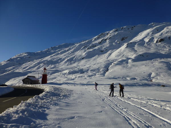 Wir starteten vom der Passhöhe bei idealen Verhältnissen und genügend Schnee.
