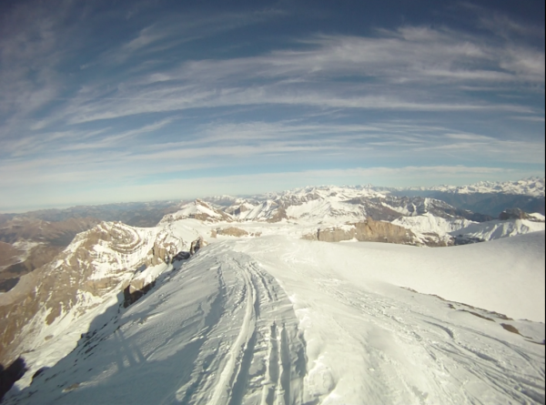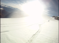 Der Gletscher ist gut eingeschneit, stellenweise hat es sogar Pulver. Wir sind seilfrei aufgestiegen, es gibt eine perfekt angelegte Aufstiegsspur. Bei der Abfahrt sind wir der Aufstiegsspur bis zur Querung Richtung Kletterstelle gefolgt, dann aber rechts etwa 200m der Falllinie entlang bis zu den Felsen, von dort linkshaltend bis zum Schlepplift (in Sichtweite).