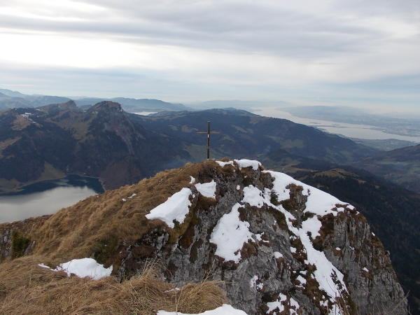 Hoher Wolkenaufzug hielt die Sonne heute oft zurück, jedoch ohne Sichtbeeinträchtigung. Ich marschierte heute mal im T-Shirt, mal gar mit Mütze, Handschuhen und Jacke. Das Oberseetal war gegen 11.30 h noch der reinste Kältetrog, die Wasseroberfläche des Obersees ist bereits nahezu komplett zugefroren.