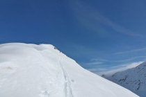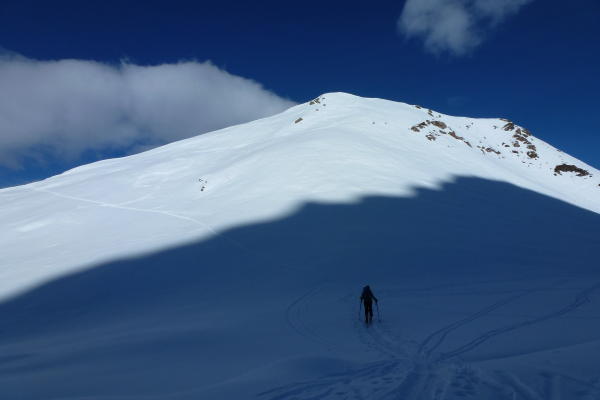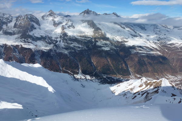Erstaunlicherweise allein auf dem Gipfel. Viel Schnee ab All'Acqua (wesentlich mehr als am Pazzolastock, der ja in den letzten Wochen viel Besuch erhielt; mein Besuch datiert vom 20.11.). Zusammenhängende Schneedecke ab Parkplatz, ohne Tragestrecken und ohne Boden- oder Steinkontakt. Schneequalität oberhalb ca. 2100 m sehr gut (gesetzter Pulver), darunter anstrengender Bruchharsch; vermutlich hat es bis in diese Höhe geregnet, was einen Deckel zur Folge hatte.