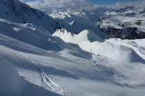 Alte, oberflächliche Lockerschneerutsche in sehr steilen E-, N- und W-Hängen; in einem NW-Steilhang auf ca. 2000 m Höhe war in den Vortagen die gesamte Schneedecke abgeglitten.