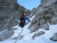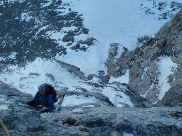 Trotzdem gibt es natürlich einige Fels-Schnee-Passagen zu erklettern. Sind alles mit den dicken Bergschuhen und fast alles mit Handschuhen geklettert.