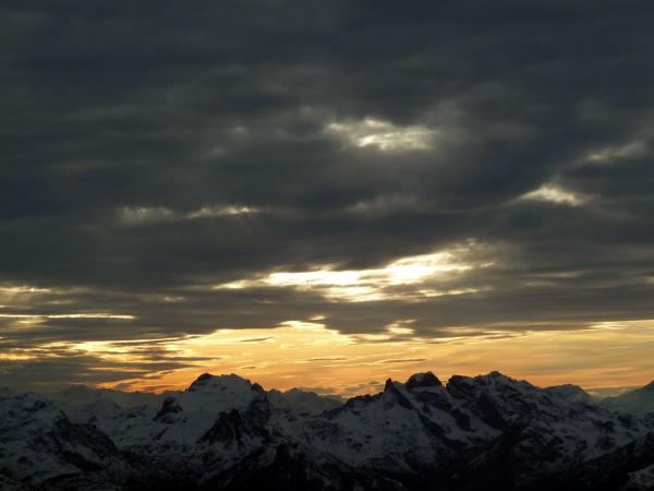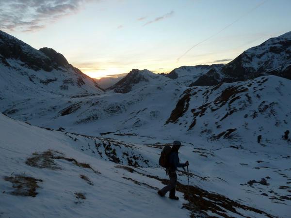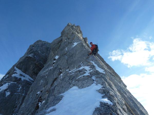 Sehr gute frühwinterliche Verhältnisse an der Nordkante. Insgesamt wenig Schnee im Zustieg, auf der Kante und im Abstieg.