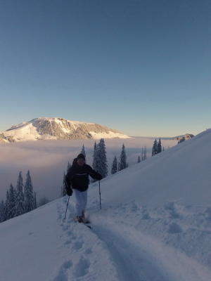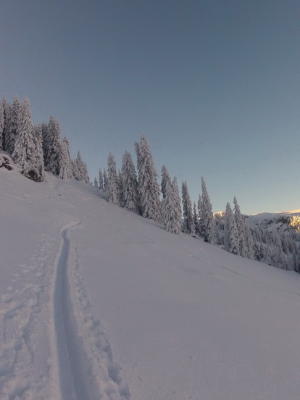 Für den 2.Schnee Einbruch Erstaunlich viel Schnee ohne Unterlage, aber für`s Einlaufen für die Skitourensaison perfekt