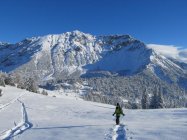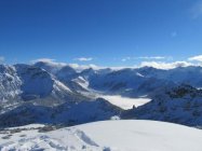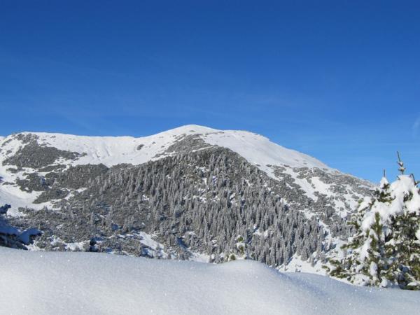 Ein prächtiger Wintertag. Tourenstart oberhalb der Hochnebelzone bei -7 Grad. 30-40 cm Pulverschnee ohne Unterlage auf den sonnenexponierten Hängen. Die Rodelbahn war zum Glück noch nicht präpariert, aber gespurt. Da auch Skibetrieb noch ruhte, war wenig los. Für eine Schneeschuhtour ideale Verhältnisse. Einzig der kalte Wind am Gipfel trübte das Vergnügen, weshalb wir die Verpflegungsrast unterhalb des Gipfels einnehmen mussten.