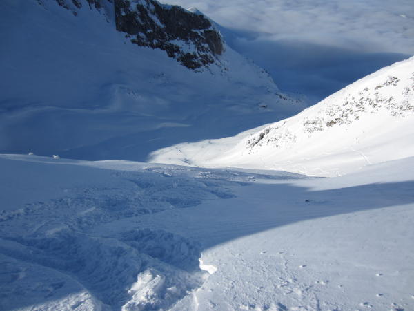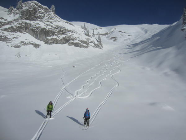 Abfahrt zuerst in Richtung Morgetepass anschliessend in südlicher Richtung bis Mittliste Morgete. Anschliessend Aufstieg auf den Schibespitz und noch einmal bis Mittliste Morgete. Erneut Aufstieg über Schibenspitz bis zum zweiten Couloir nach dem Bunker. Abfahrt durch wunderbaren Pulver bis Underi Gantrischhütte.