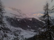 Vom Start weg viel schöner Pulverschnee. Unten im Wald Champagne-Powder, oben hinter Kuppen stellenweise ein wenig Windharsch. Keinerlei Steinkontakt.