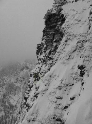 Eine weitere Seilschaft kletterte noch die "Ruby Tuesday" und 3 Seilschaften in der klassischen Nordwand. Das Eis in der Ruby Tuesday sieht nur mäßig ausgebildet aus. Gaisalpfälle noch sehr dürftig. Solotrip könnte evtl bald mit dünnem Eis und Mixedambitionen kletterbar sein. "Ice on the rocks": noch deutlich zu wenig Eis.