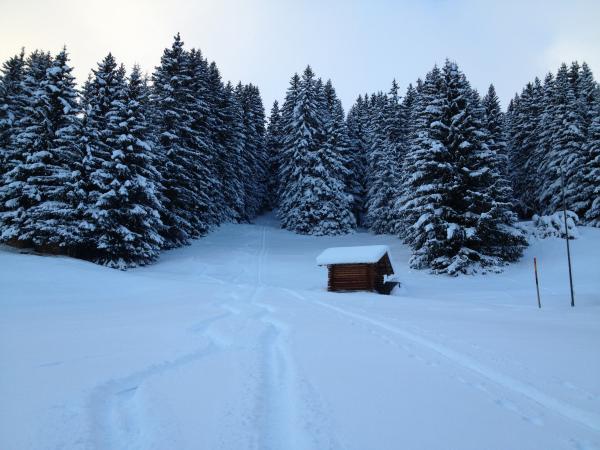 Ca. 30 bis 50 cm Pulver. Im Wald sehr schön, oberhalb etwas unruhig wegen Windeinfluss.