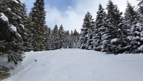 Genügend Schnee, für grenzenlosen Fahrspass fehlen jedoch mind. nochmals 50cm plus noch eine gefestigte Unterlage. Das Gelände ist gespickt mit vielen versteckten Steinen und Felsbrocken, welche man aktuell mangels Unterlage problemlos berührt...