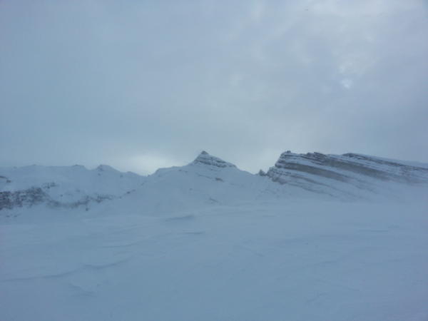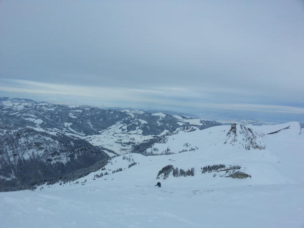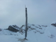 Auch heute Völkerwanderung. Eisiger Wind auf dem Gipfel und fast kein Schnee mehr durch Verwehungen.