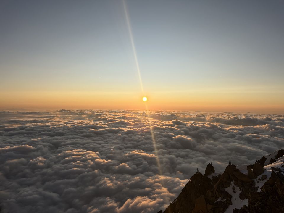 Die Einordnung ‚ausgezeichnet‘ bezieht sich auf die Tour als Sommerhochtour. Die Tacul-Flanke lässt sich problemlos auf guter Spur begehen. Am Bergschrund in der Flanke unterhalb des Maudit ist ein Fixseil installiert, so dass der Schrund problemlos überwunden werden kann (1 Pickel ausreichend). Mur de la cote auf guter Spur ebenfalls problemlos. Wir haben es uns nicht nehmen lassen, dem Jahr noch eine letzte Skitour abzugewinnen, waren allerdings die einzigen auf der Cosmiques-Hütte mit Ski. Faktisch trägt man die Ski komplett bis zum Gipfel, weil es zwar möglich wäre, einzelne Passagen mit Ski zu gehen, das aber wegen des harten Firns nicht wirklich sinnvoll ist. Dafür konnten wir über die Nordflanke vom Gipfel mit Ski abfahren (oben hart, unten schöner Sulz - landschaftlich sehr eindrucksvoll!). Für uns hat das die Sache ‚rund’ gemacht und war ein würdiger Abschluss der Skitourensaison. La Jonction wird aktuell ganz unten gequert. Der (felsige) Einstieg befindet sich in der Senke unterhalb der Markierungsstange und ist nicht markiert. Im weiteren Verlauf finden sich aber immer wieder Spuren und einzelne Stangen, die den Weg weisen. Wie lange der Weg durch das sehr eindrucksvolle Spaltenlabyrinth noch hält, ist fraglich. 1,5-2 Std. Fußmarsch bis Plan de l‘Aiguille runden den Tourentag ab. Wir haben noch den Mont Maudit mitgenommen, von der Schulter eine schöne, kleine Kraxelei. ME eine Empfehlung, die Aussicht ist jedenfalls super (ca. 1-1,5 Std. zusätzlicher Zeitbedarf).