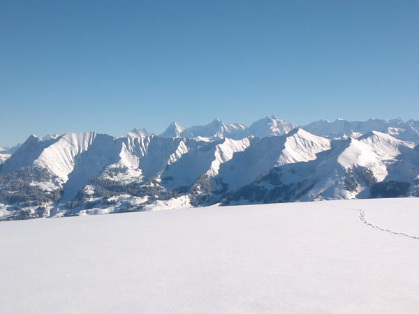 Einige Leute am Gipfel, aber gar nicht überfüllt. Meniggrat auch gespurt, auch am Wiriehorn sah ich eine Spur.