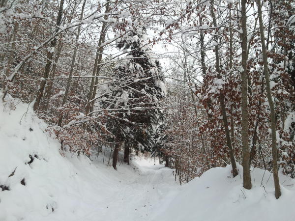 Im Wald dann Schlitten- und Fussspuren vorhanden.