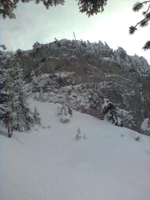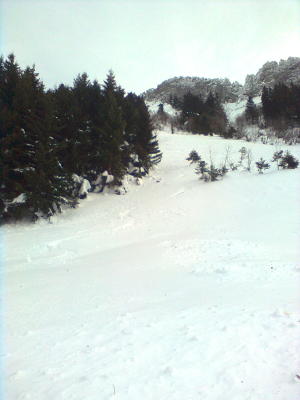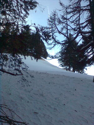 Abfahrt auf tw. wingepresstem Schnee,tw. noch etwas Pulver gefunden.