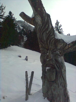 Von unten sehr viel Schnee.Wird aber mit diesem Föhnsturm schnell weniger bis 1200m.Viel Kleinholz und Triebschnee auch im unteren Teil.Vom Gätterlipass mehr onder weniger dem Bergweg folgen ab 1400m sehr steil und diverse Bäume durch Schneelast umgedrückt. Bis ca. 1500m kein Schnee mehr auf Bäumen, alles weggefegt.
