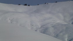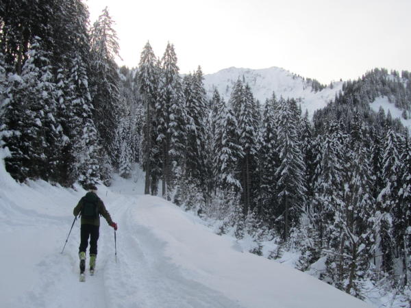 7.50h auf Bädleparkplatz -3grad C. Seit Sonntag hat es ca 30 cm Neuschnee gegeben, der auch noch bei der Abfahrt meist traumhaft locker war !