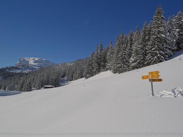 Bei der Hirsegg-Brücke total ca. 40cm Schnee, mit der Höhe zunehmend bis ca. 100cm. Bessere Verhälnisse sind wohl kaum möglich.