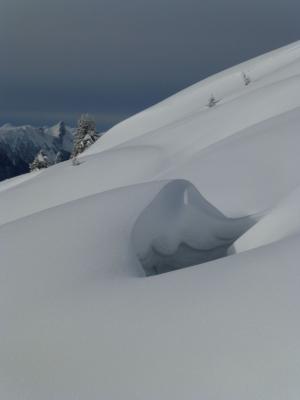 U.a. alte Lawinenkegel im Howald und in der Schneise, Fischmäuler unter der Merra und in der Schneise.