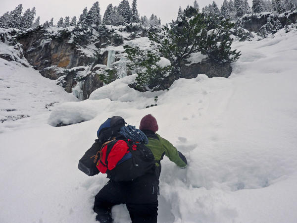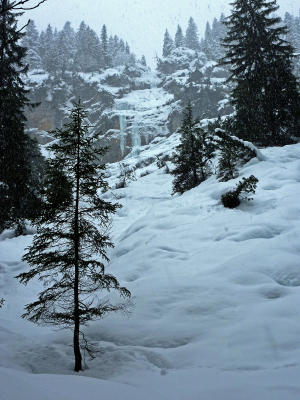 Noch zu wenig Masse. Und durch den Regen der Nacht war das wenige Eis sehr weich und nass.