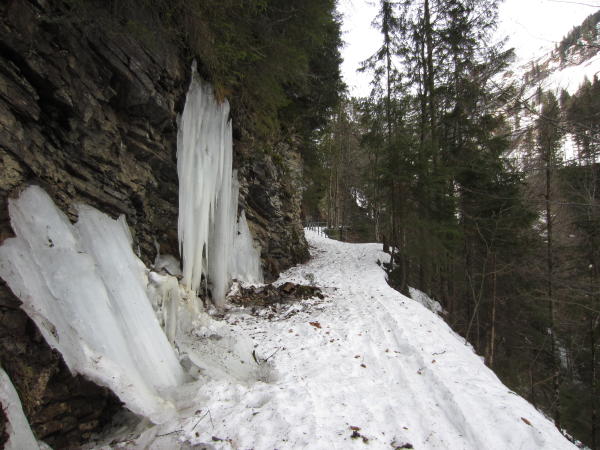In der Schluchhole viele versteckte Löcher und Mulden welche noch nicht ganz mit Schnee gefüllt sind.