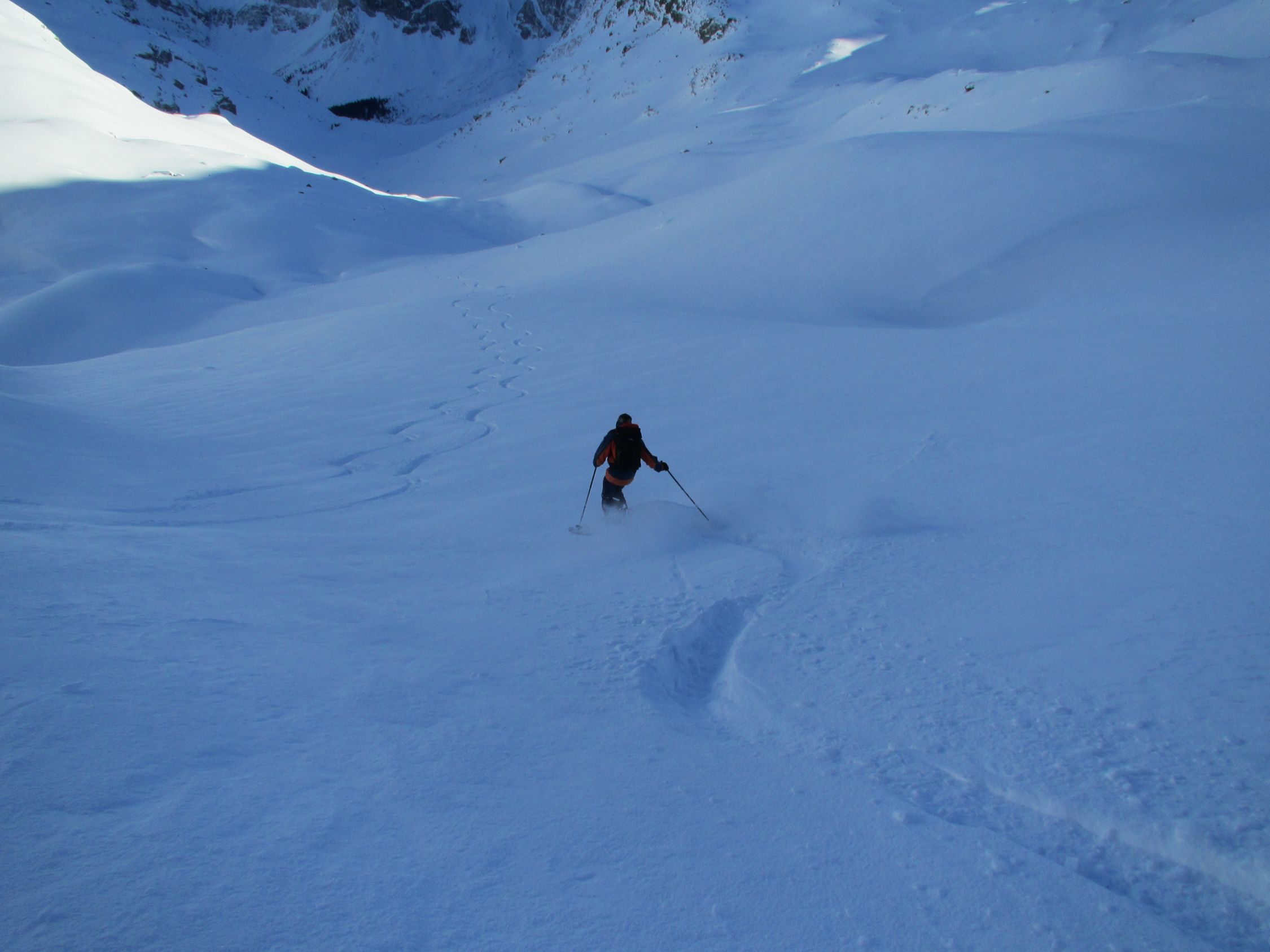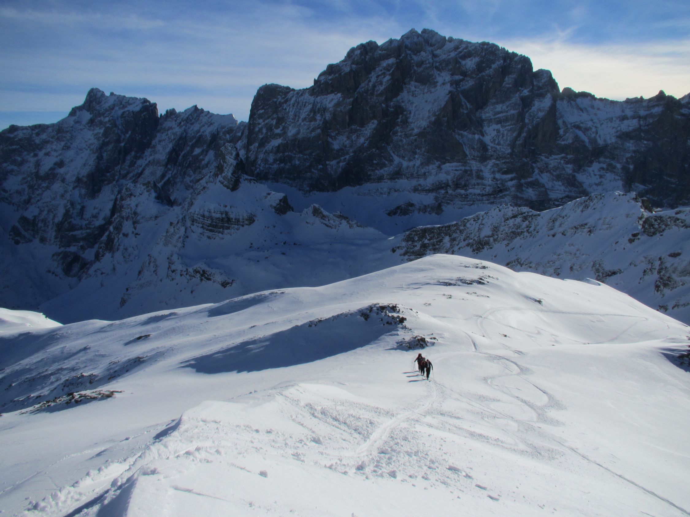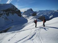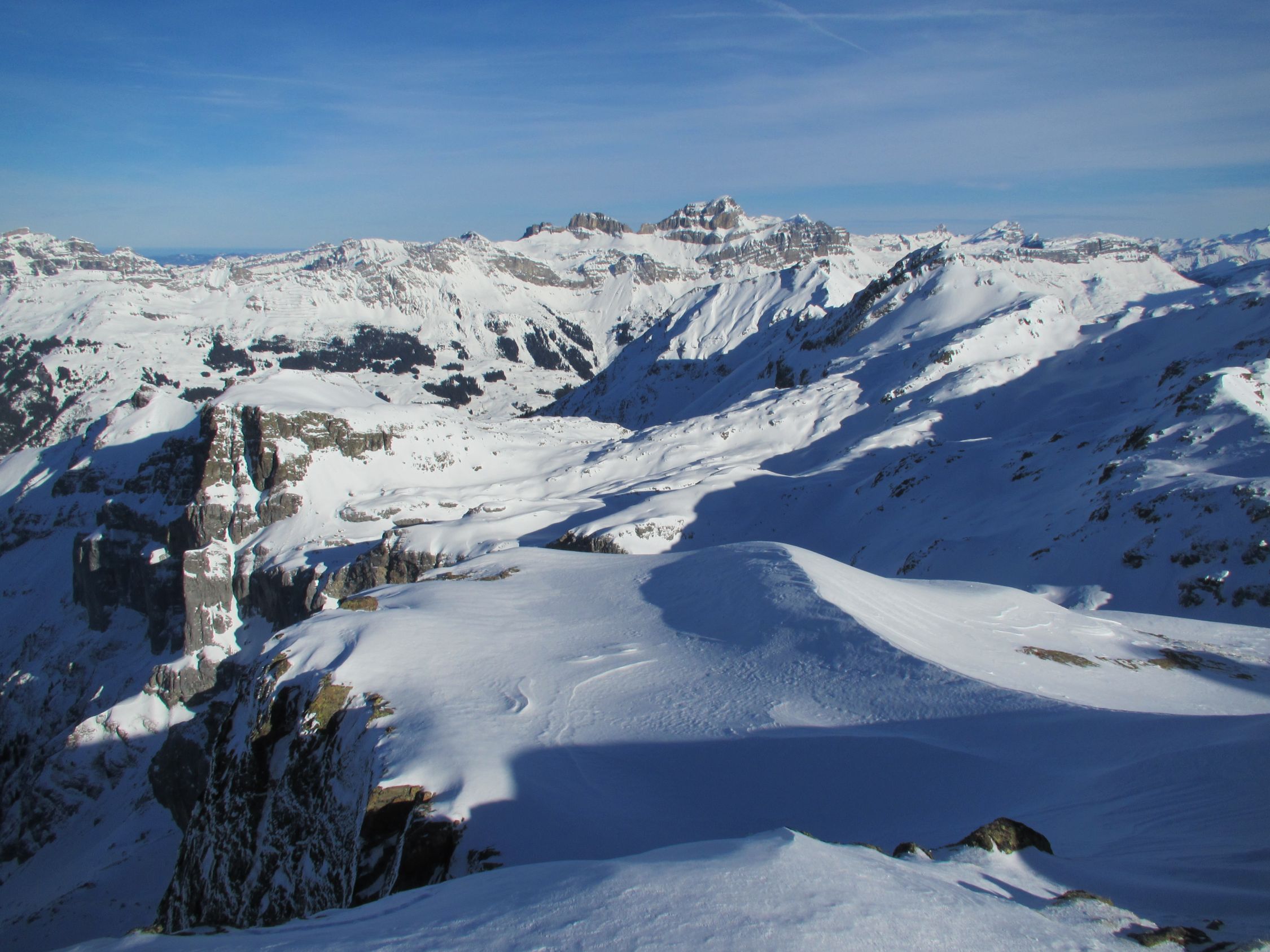 Die Skis konnten ab Parkplatz beim Brüggli angeschnallt werden. Durchs Brunnital auf einem Sammelsurium von Spuren, verziert mit einem "Geiferli" Neuschnee" Von Brunni durch den Chärschelenwald nach Flösch. Ab Eingang Griesstal wurde der pulvrige Schnee tiefer. Wind (Föhn) kam auf und blies an exponierten Stellen die Arbeit unserer Vorgänger wieder zu. Trotzdem, wir provitierten heute von A-Z. Dankeschön an die beiden unbekannten Pioniere. Unter dem Hoch Fulen durch zum Kreuz, von dort hat man einen wunderschönen Tiefblick aufs Haldi, zu den Urner Talgemeinden und zum Urnersee. Der Hoch Fulen wurde heute recht gut besucht. In der Abfahrt auf gut gesetztem Pulverschnee zum Flösch, dann rechts unter das Wiss Stöckli und via Pfaffen auf die Brunnialp. Auf der Waldstrasse nach Unterschächen zurück.