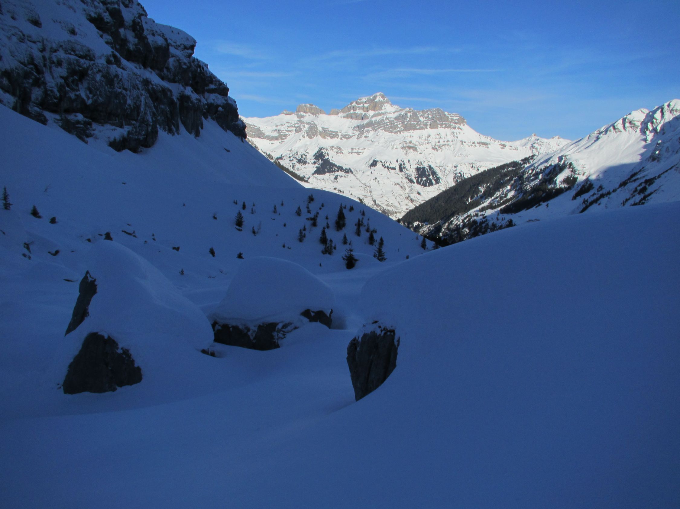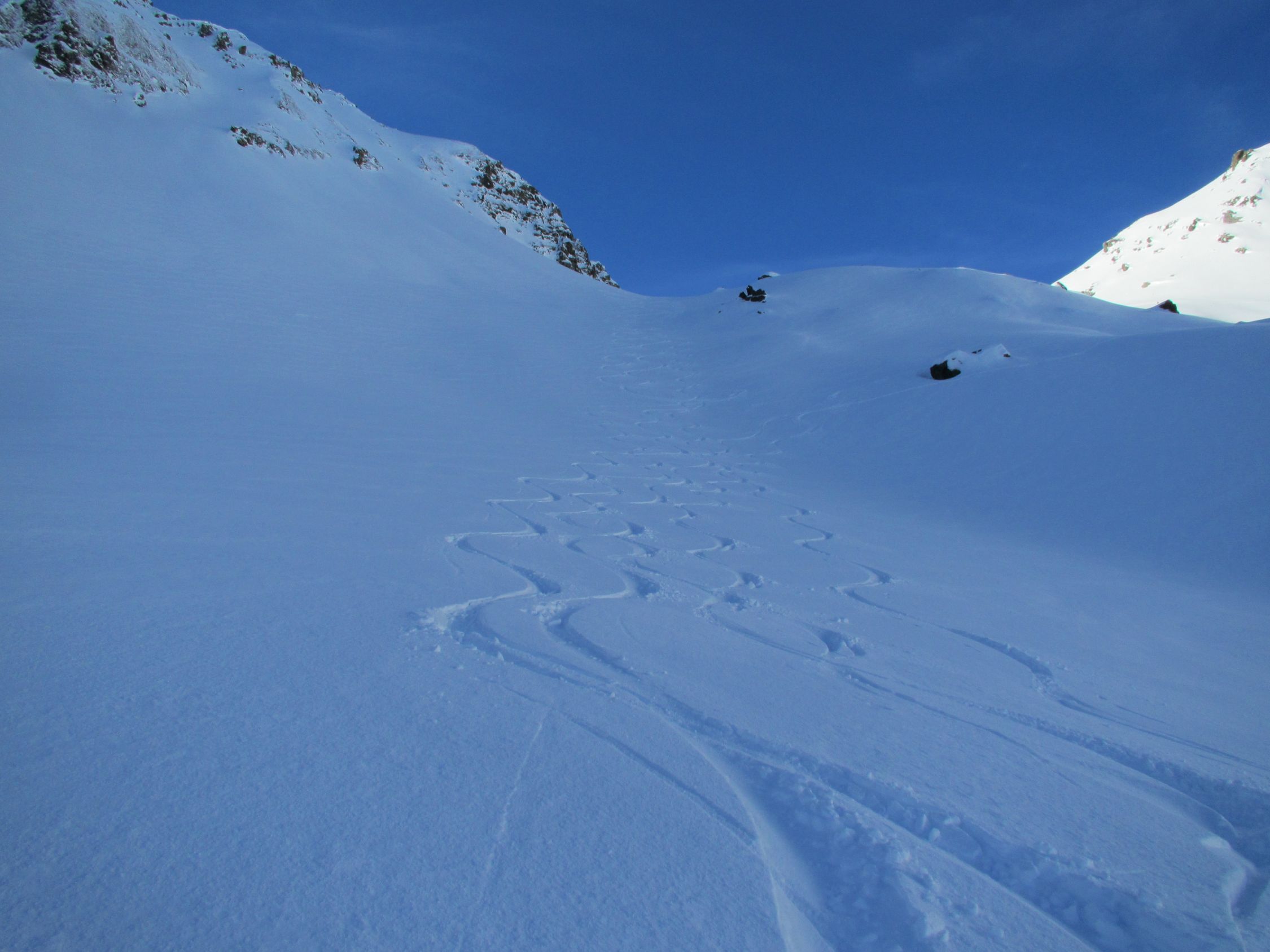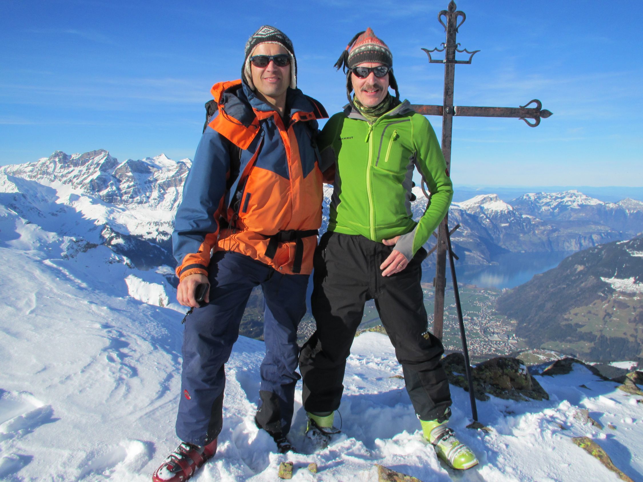 Die Skis konnten ab Parkplatz beim Brüggli angeschnallt werden. Durchs Brunnital auf einem Sammelsurium von Spuren, verziert mit einem "Geiferli" Neuschnee" Von Brunni durch den Chärschelenwald nach Flösch. Ab Eingang Griesstal wurde der pulvrige Schnee tiefer. Wind (Föhn) kam auf und blies an exponierten Stellen die Arbeit unserer Vorgänger wieder zu. Trotzdem, wir provitierten heute von A-Z. Dankeschön an die beiden unbekannten Pioniere. Unter dem Hoch Fulen durch zum Kreuz, von dort hat man einen wunderschönen Tiefblick aufs Haldi, zu den Urner Talgemeinden und zum Urnersee. Der Hoch Fulen wurde heute recht gut besucht. In der Abfahrt auf gut gesetztem Pulverschnee zum Flösch, dann rechts unter das Wiss Stöckli und via Pfaffen auf die Brunnialp. Auf der Waldstrasse nach Unterschächen zurück.