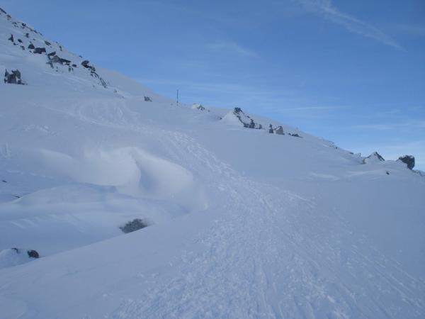 Bleibt weiterhin eine lohnenswerte Tour. Da die Sonne die Abfahrtshänge nur kurz bescheint, bleibt der Schnee weiterhin locker.