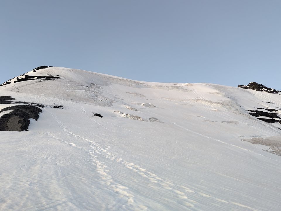Wird sicher nicht besser mit der starken Juni/Juli Sonne. Blankeis Stelle am Morgenhorn und Felsteile im Grat werden von Tag zu Tag größer... Und teils wird es dann ziemlich bröselig.