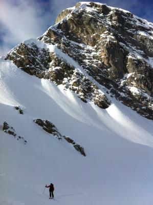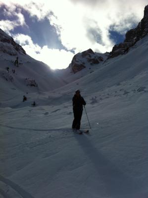 Erstaunlich gut Pulver ab Waldgrenze, zwischendurch Plattenpulver und Gipfelhang nach Couli abgeplassen mit einem Schaum Neuschnee.