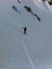 Vom Rothornsattel Querung zu Couli und auf Gipfelgrad eingeplassener GriesSschnee, schwierig zum Aufsteigen 3 Schritte vorwärts, einer Rückwärts