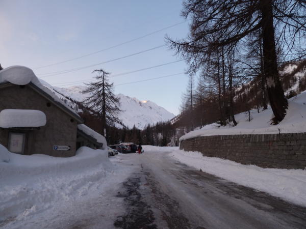 Beim Start in All Acqua Pulverschnee im Wald. Die Aufstiegsspur ist sehr gut angelegt.