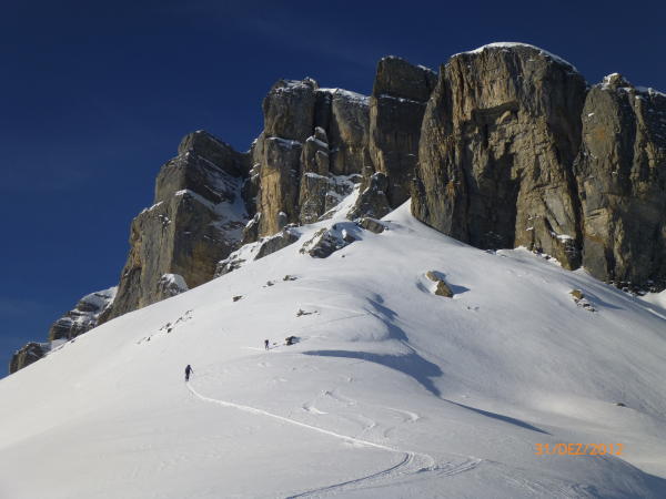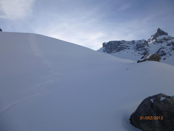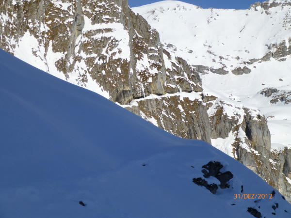 Wollte auf den Seestock durchs Loch bei den Lochplanggen.Dort war der Schnee(SO)pickelhart.Ohne Harscheisen wählte ich dann ein anderes Ziel.