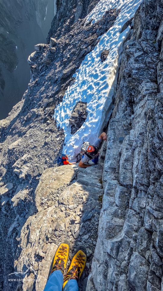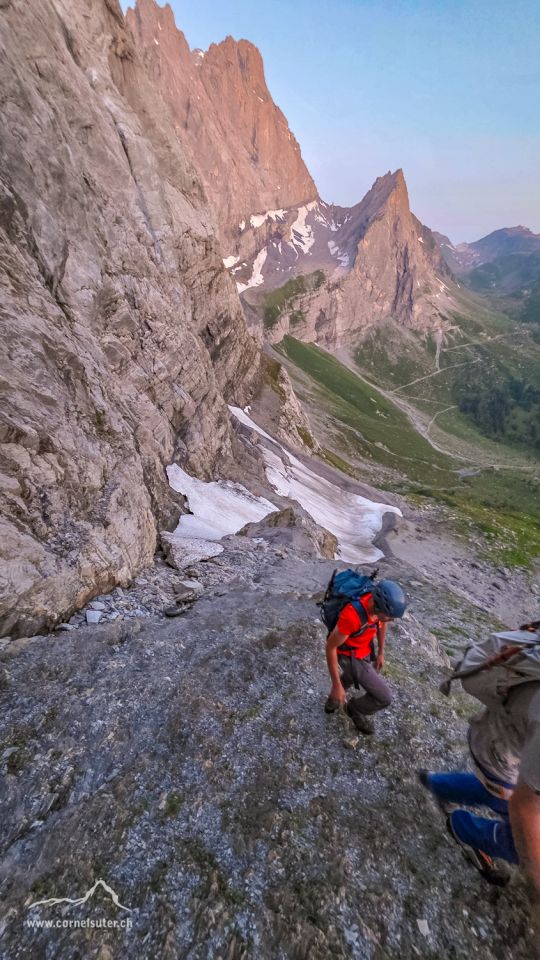 Beim Ausstieg und Ausstiegs Couloir noch gut mit Schnee bedeckt.