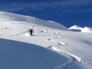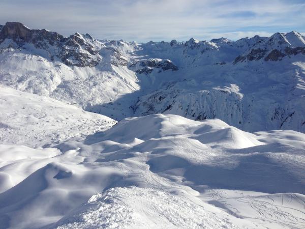 Heute sehr wenig Tourengänger auf dieser Seite des Tales. Nach wie vor viel freier Platz für perfekte Pulverschwünge.