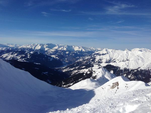 Beim Aufstieg haben wor die Variante über den Rücken gewählt und sind dann bei der Abfahrt über den steilen Gipfelhang direkt durch die Mulden in schönstem, teilweise unberührtem Pulver zum Obersäss gekurvt.