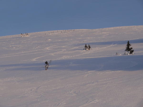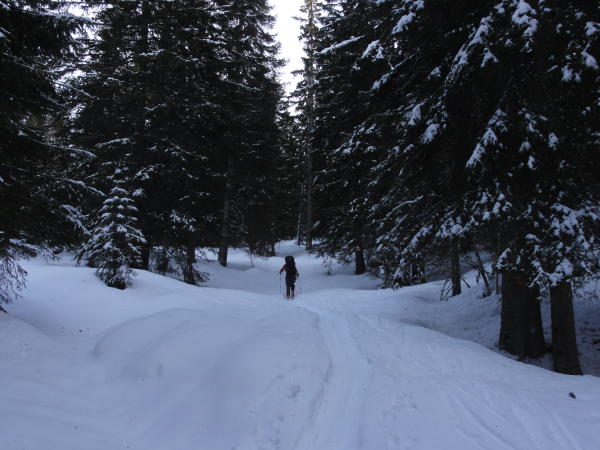 Wir sind in Solliat-Golisse ausgestiegen und haben eine durchgehende Schneedecke erst ab ca. 1150 vorgefunden. Darüber hat es genug Schnee, um keine Steine zu erwischen.