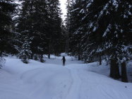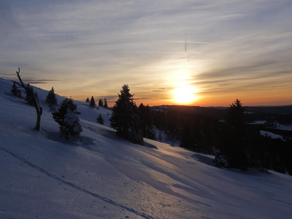 Einsame Tour - unsere erste Jura-Skitour überhaupt! Weit und breit keine Skifahrer. Ab und zu trifft man auf Schneeschuh- oder Langlaufspuren.