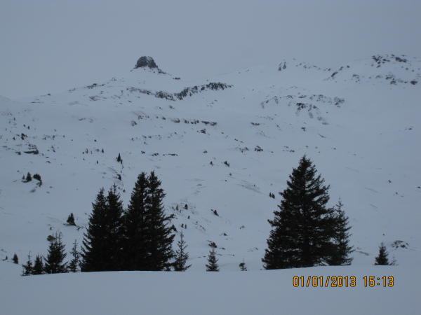 Gut eingeschneites Tourengebiet mit wenigen, nicht störenden abgeblasenen Stellen. Glasiges wechselnd mit leichtem Triebschnee im spurlosen Aufstieg.