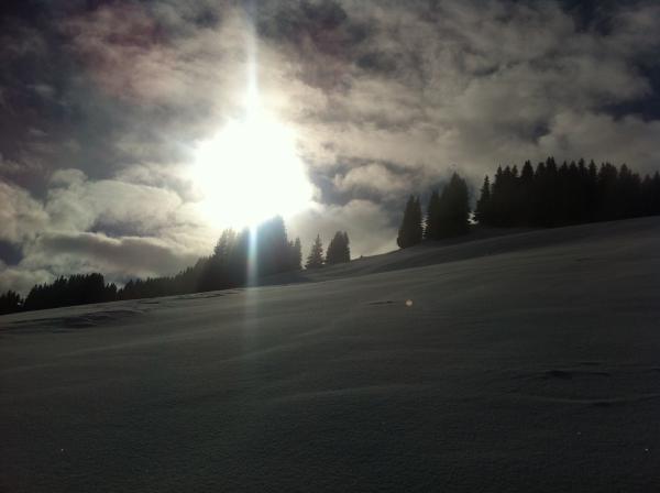 In Matten eine Spur angezuckert, dann immer mehr Schnee. 15-20 cm Pulver auf tragender Unterlage. War super.