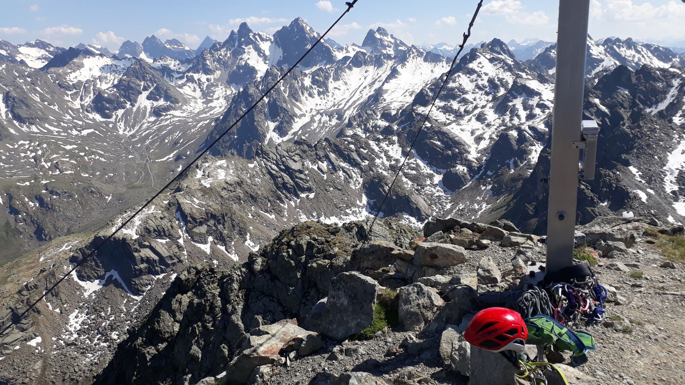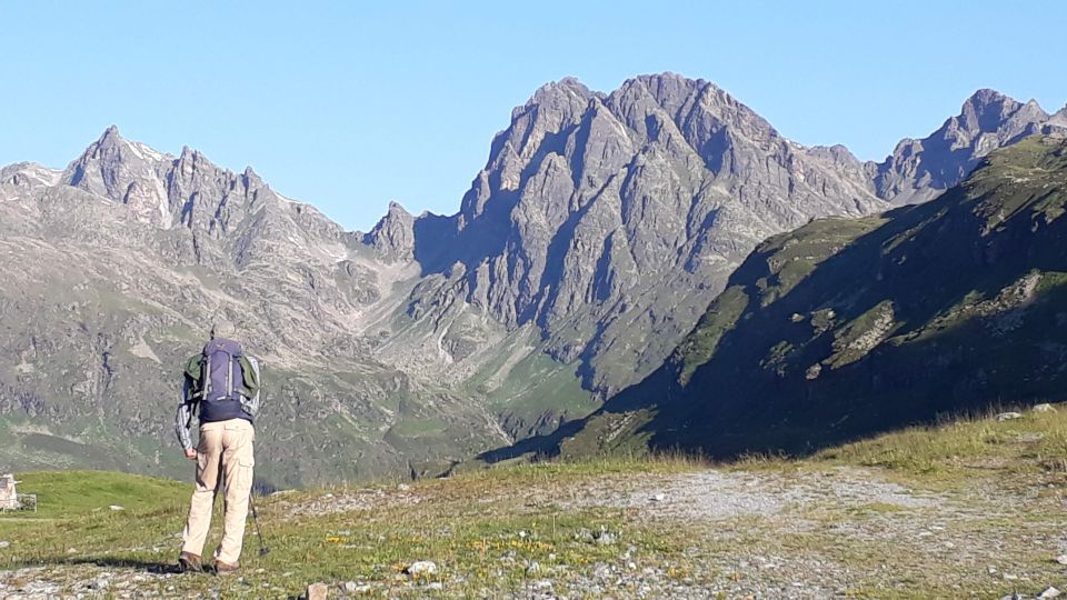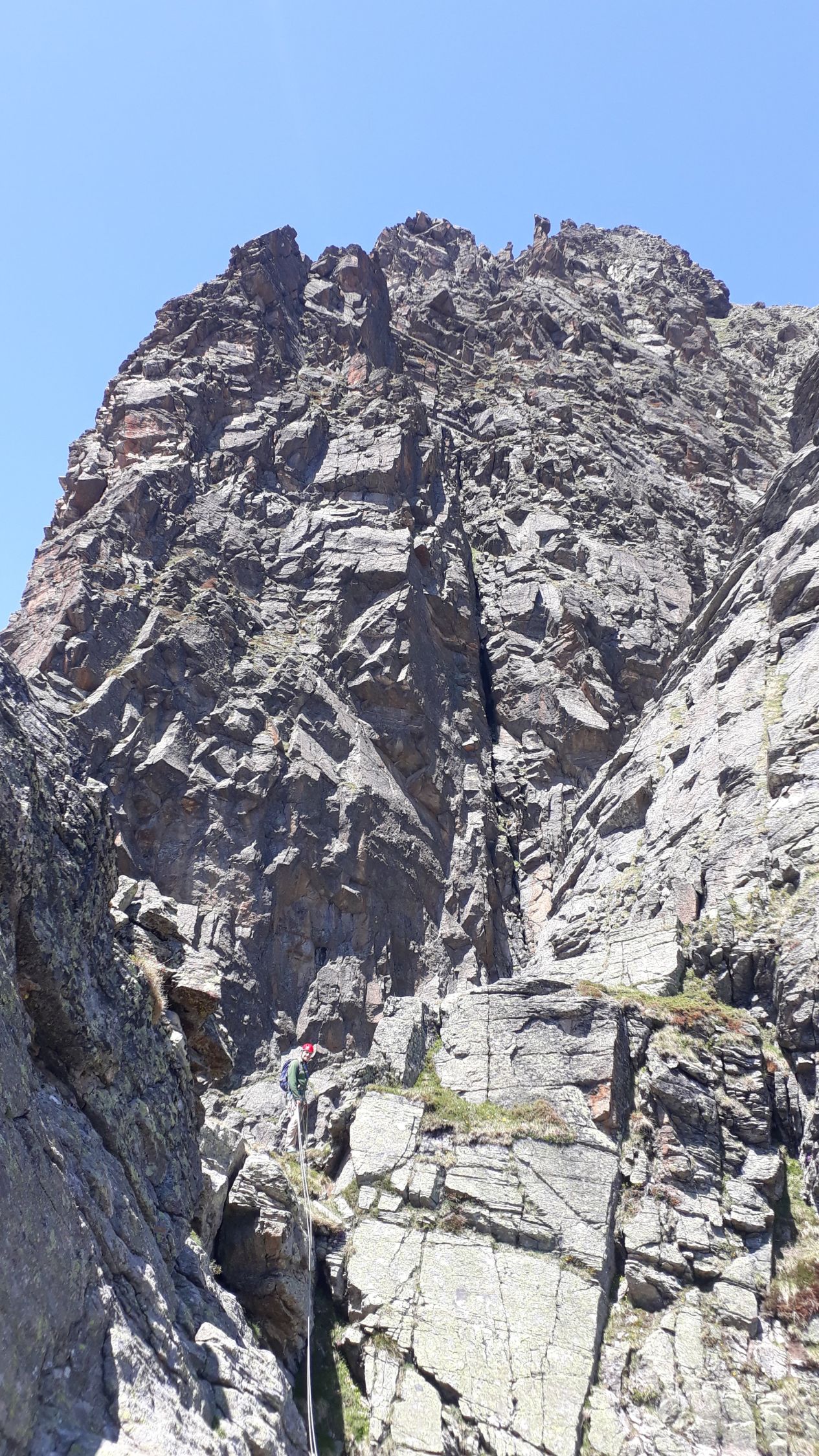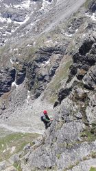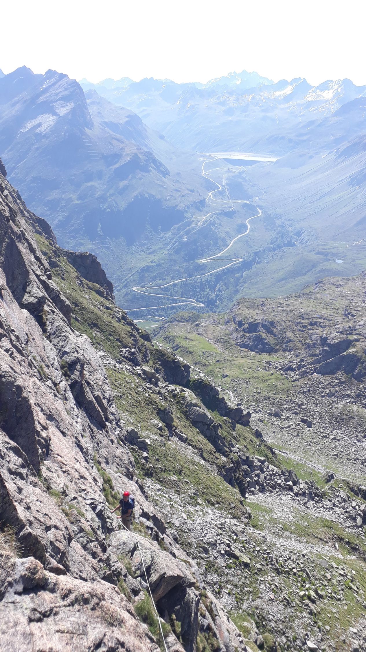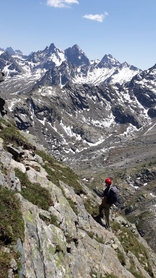 Im Augenblick sehr gute Startbedingungen für Touren von der Bielerhöhe weg. Die Silvrettastrasse ist aktuell zwischen Vermuntstausee und Partenen gesperrt, und sie kann nur von der Paznauner Seite aus befahren werden. Dafür wird keine Straßenmaut erhoben und es gibt keinen lauten Durchgangsverkehr und keine Motorräder. Himmlische Ruhe auf der Bielerhöhe! Wir sind vom Vermuntstausee, wo es gute Parkmöglichkeiten gibt, den Bergpfad ins Maderneratal hochgestiegen. Der Einstieg ist gut zu finden, auf ca. 2350m den Weg zum Hochmadererjoch nach rechts verlassen und zum Wandfuß des Südostpfeilers hinüberqueren.