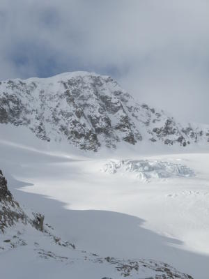 Tiefengletscher gut eingeschneit. Heute starker-stürmischer Wind im Gipfelgratbereich. Trittspur vom Skidepot3320m bis auf den Gipfel ist vorhanden. Die Abfahrt von der OberenBielenlücke ist ganz nett, wenn auch ein bisschen vom Wind gezeichnet, d.h teilweise ein bisschen gepresst. Besser waren die Hänge vom ChliBielenhorn zum Tiefenbach runter.