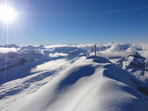 teilweise sehr wenig Schnee, insbesondere beim Überqueren der Geröllfelder vor der Gipfelflanke