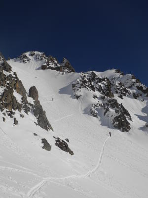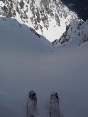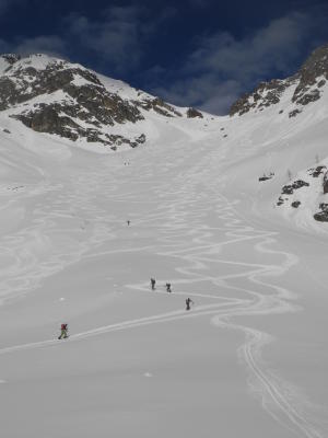 etwas eisige spur bis alp,gegen col sehr gut,culiaufstieg wegen hitze etwas heikel(kleine feuchtschneerutsche aus felsen).abfahrt hammerpulfer auf tragender schicht,ausfahrt c.rossa bis schneisen etwas angezogen mit pulfer wechselnd,schneise bis runter genügend schnee,gut eingefahren,z.t. etwas arg gschtrüpig(ausfahrt durch bachrinne am besten).