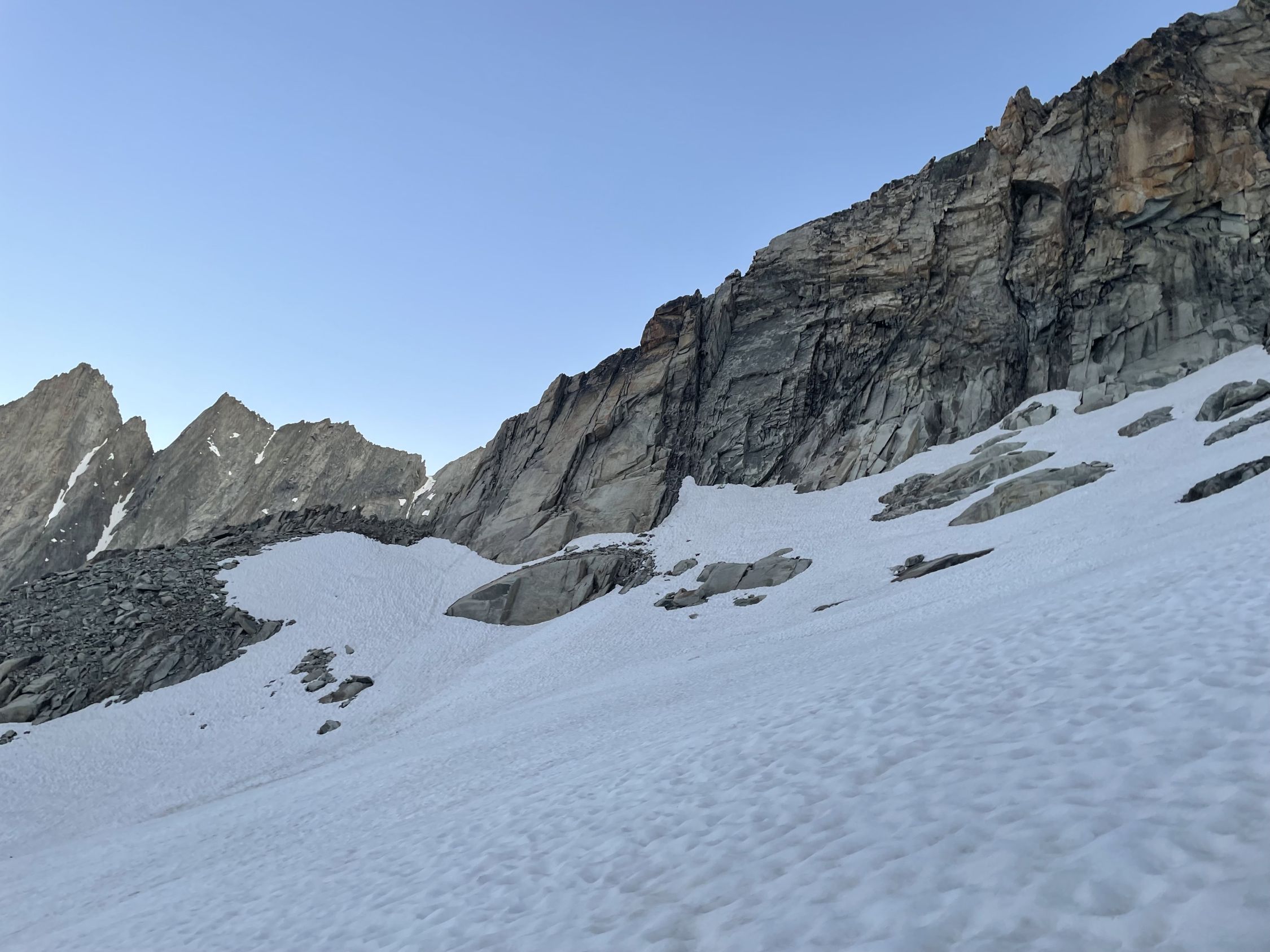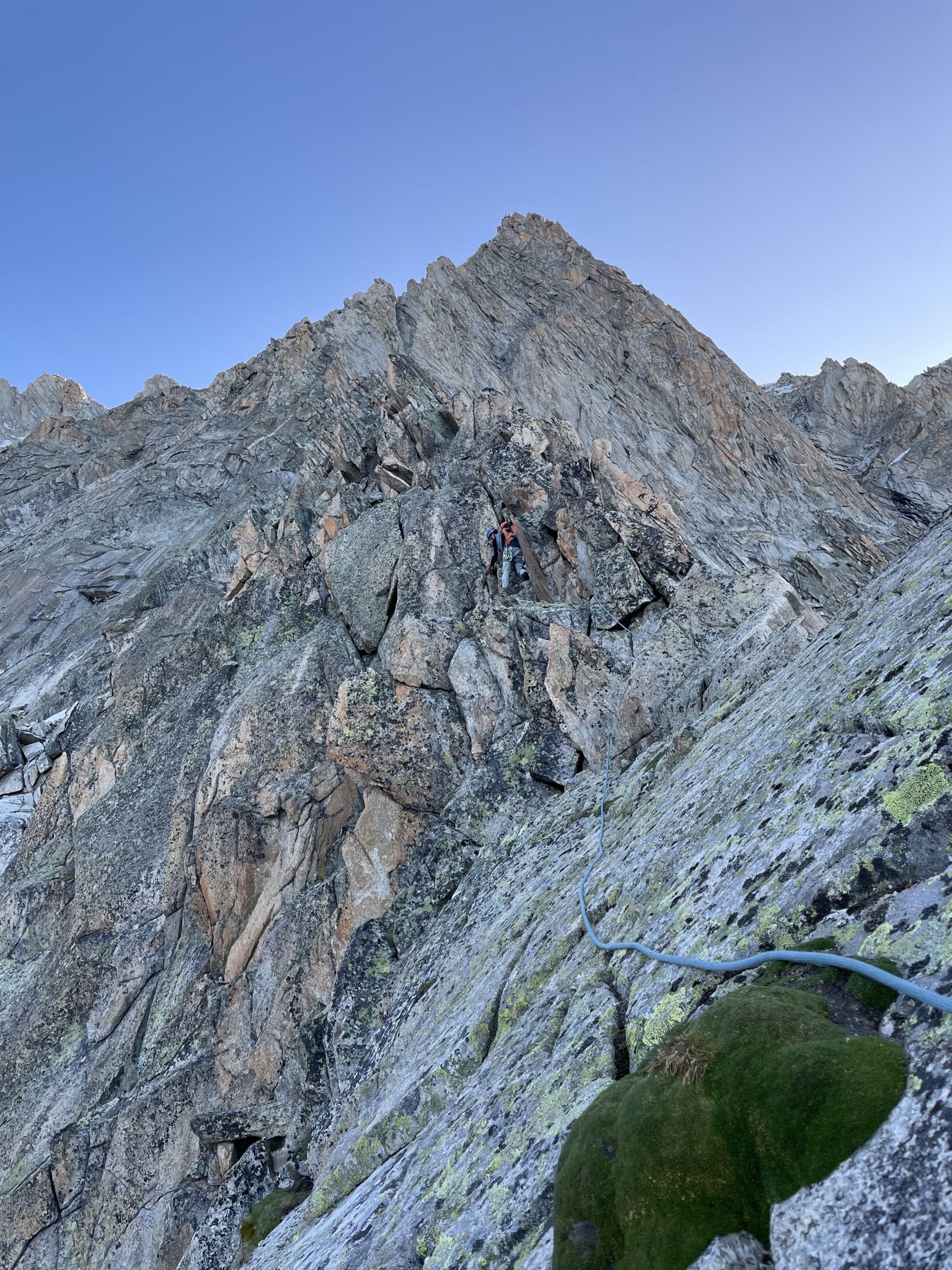 Der Fels war überall trocken und schneefrei. Insgesamt liegt noch wenig Schnee im Zu- und Abstieg, der es eher einfacher macht. Der Schnee war bereits am Morgen weich, ganze Tour ohne Steigeisen gegangen.