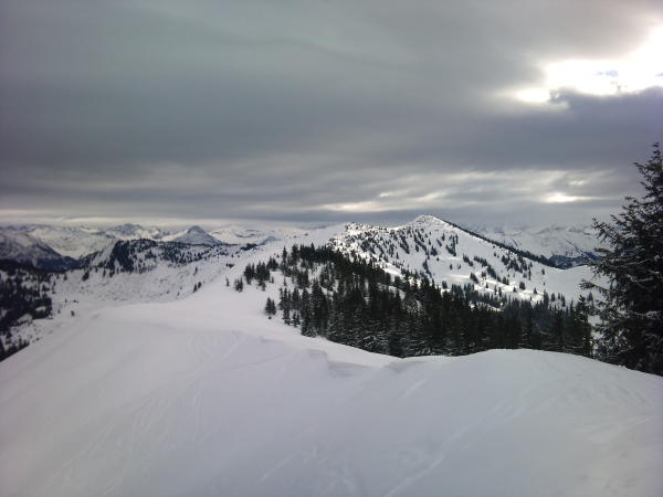 Viel Schnee und recht kalter Wind....meist Pulver und teils in den Mulden gepresster Schnee.