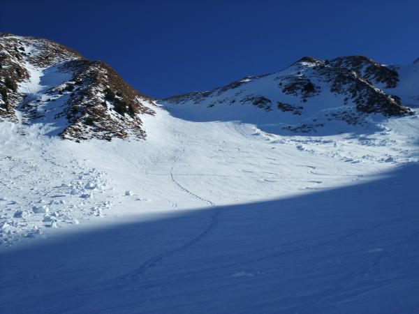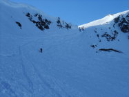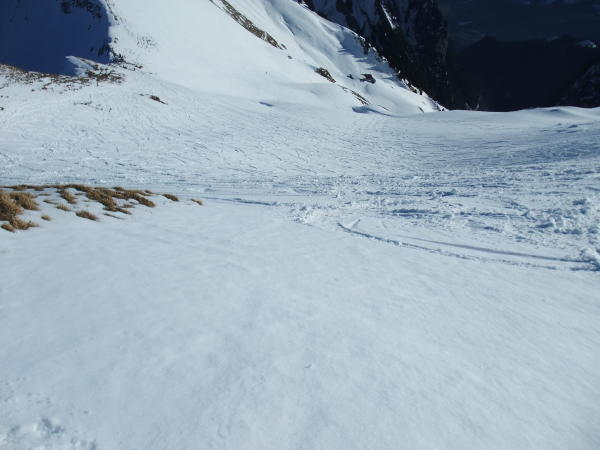 Traverse zum Morgetepass gut. Oben ein bischen hart. Südflanke bis Gipfel fast frühlingshaft mit einer kurzen aperen Stelle. Abfahrt durch Nordflanke hart und verspurt. Geht aber. Ostcouloirs bestimmt besser.