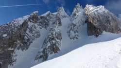Wir eröffneten heute den "Canale della fiamma" - das steile Couloir, welches vom Poncione di Cassina Baggio runter auf die Abfahrt der Normalroute führt. Die Verhältnisse im Couloir sind aktuell absolute safe, jedoch auch hier ein Mix aus weichem, schön zu fahrendem und dann wieder windbearbeitetem Schnee. Für den Einstieg ins Couloir braucht's die nötige Erfahrung sowie den Mut, dem Ski evtl. einen kleinen Kratzer zuzuführen (Stein kommt zum Vorschein).