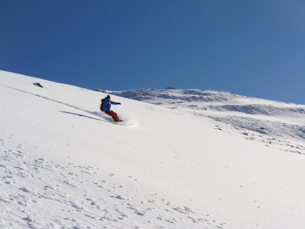 Der Schnee ist wie überall knapp. So etwas wie eine feine Pulverschicht ist noch auf den letzten Höhenmetern anzutreffen.