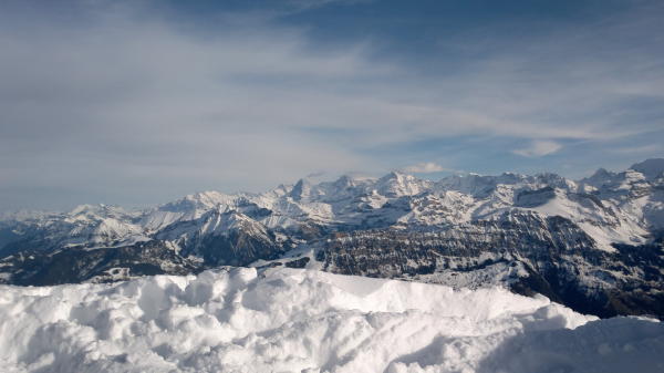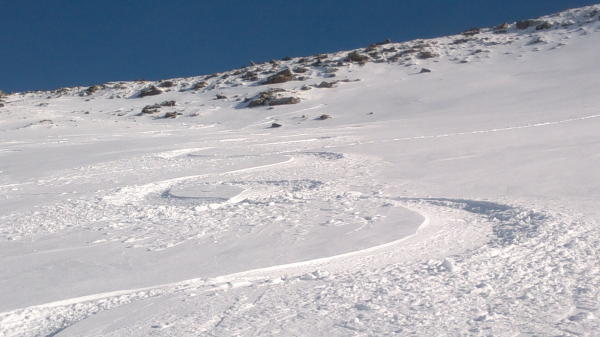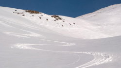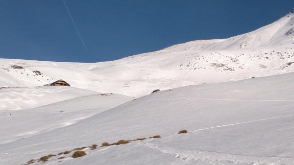 Grosse alte Lawinen vom Cheibehorn abgegangen, auch etliches an Schneebrettern in der Querung von hinderste Chirel zur Alp Hohniesen. Aber nichts Neues.